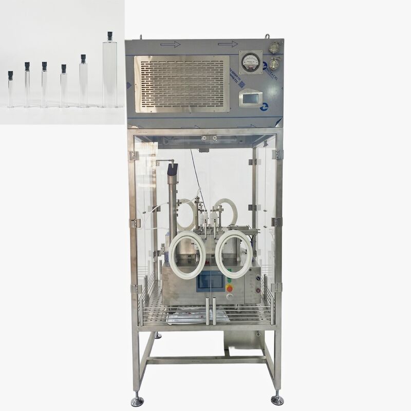 This compact Desktop Vacuum Filling and Plugging Machine is specifically designed for pre-filled syringes and vials. Equipped with a laminar flow hood, it ensures a sterile environment for high-precision pharmaceutical applications.